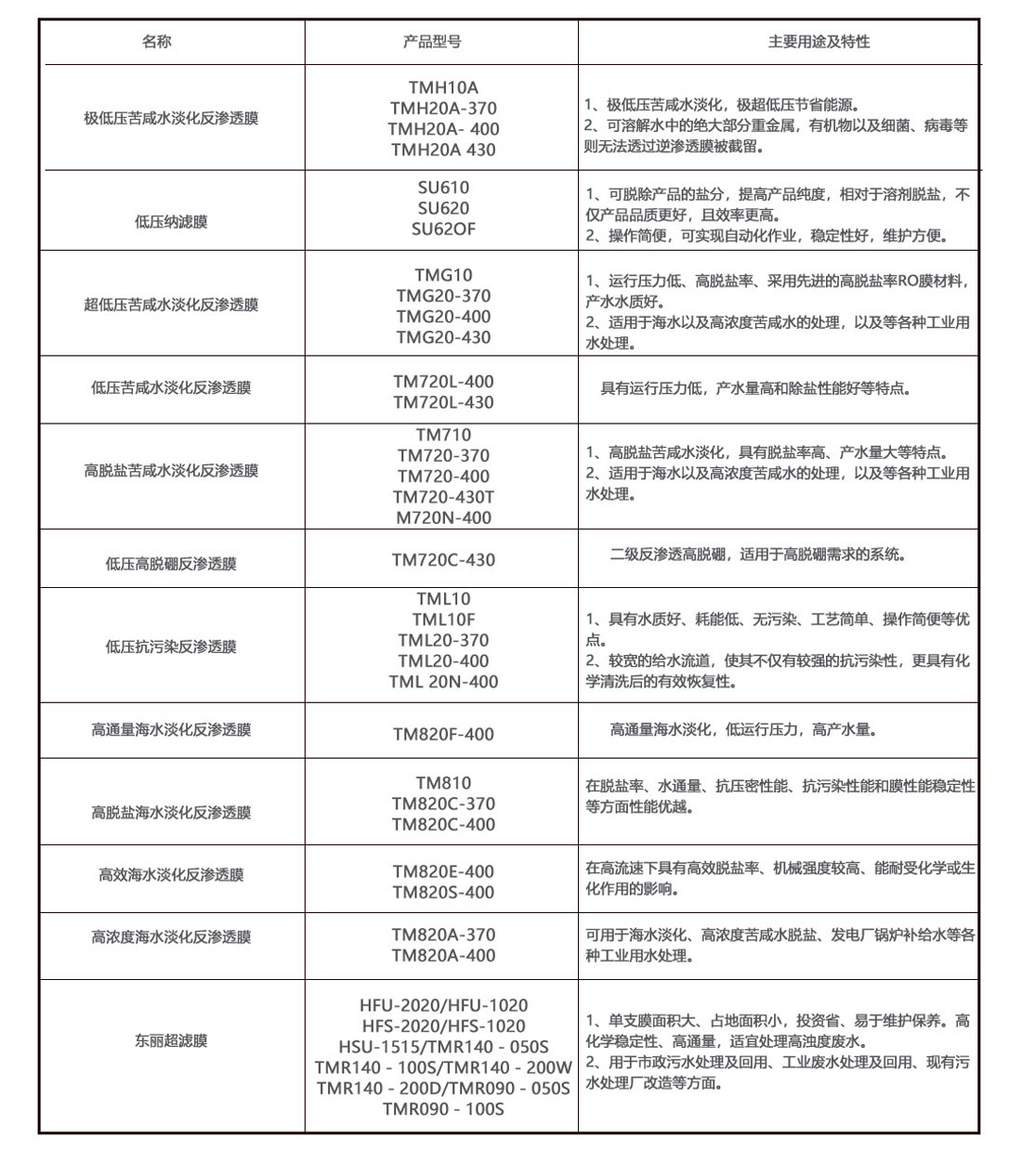 普盛龍源·膜型號