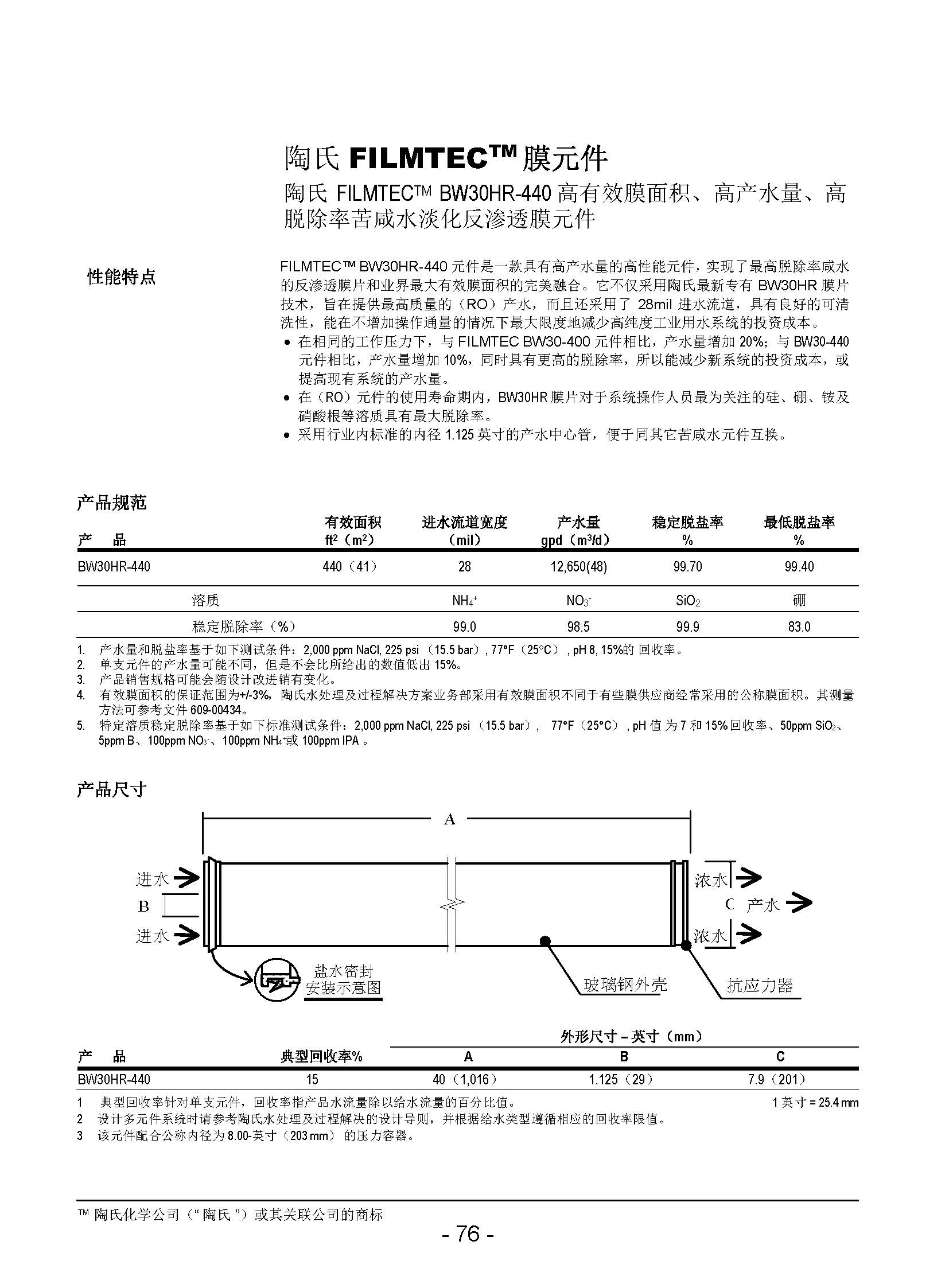 杜邦陶氏反滲透膜BW30HR-440
