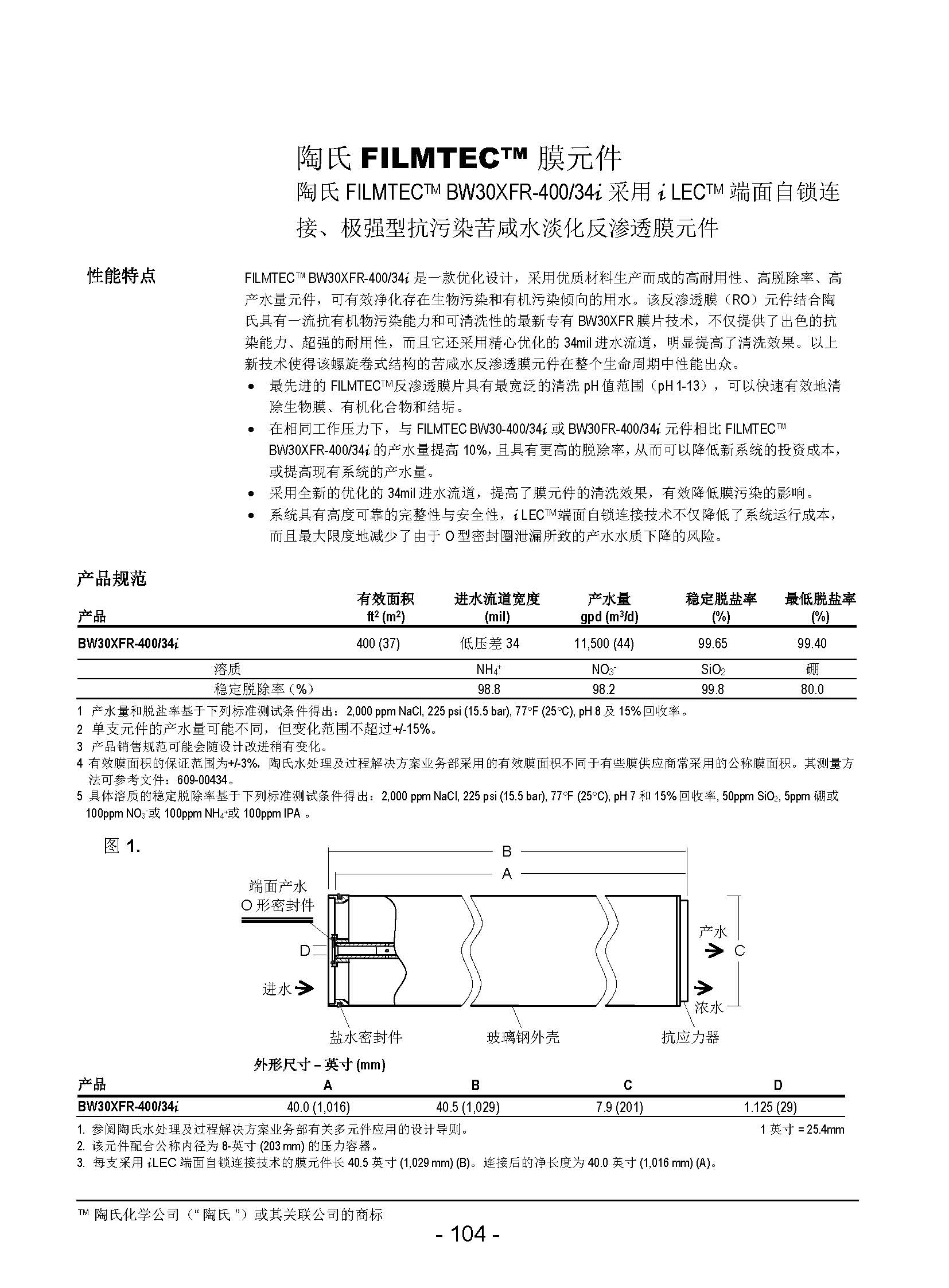 杜邦陶氏反滲透膜BW30XFR-400/34i
